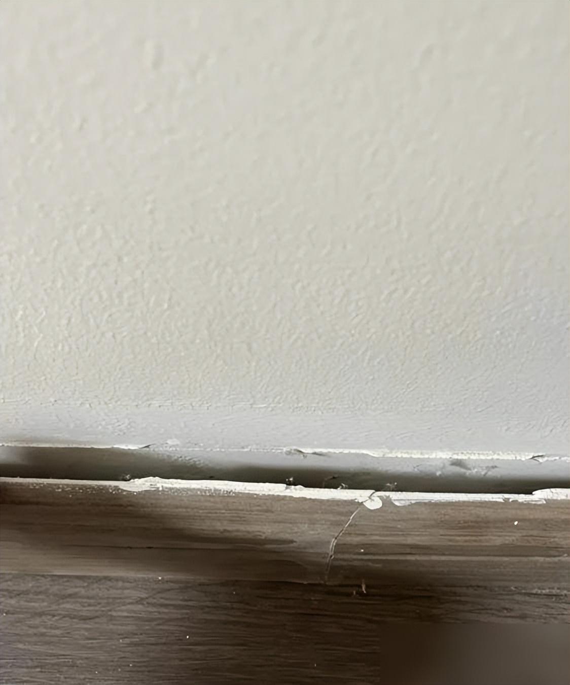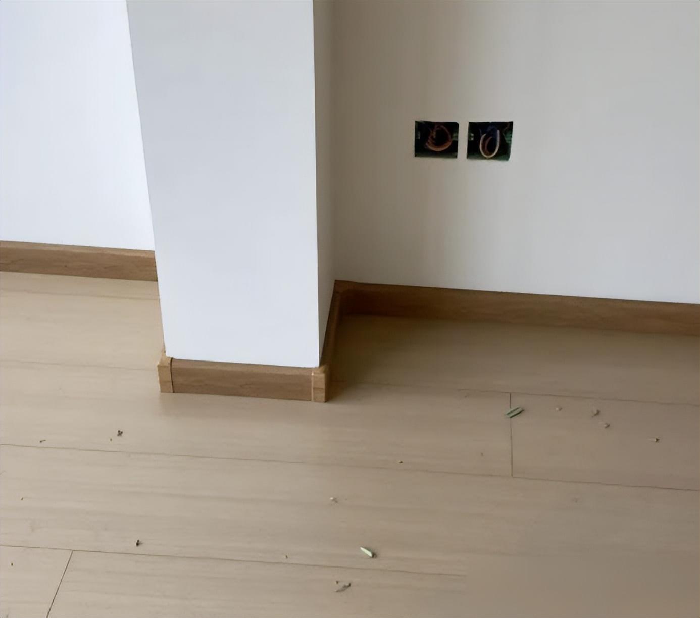 結果第三年,踢腳線開始翹邊,小孩跑的時候踢到,直接掉了一塊,差點絆倒孩子。