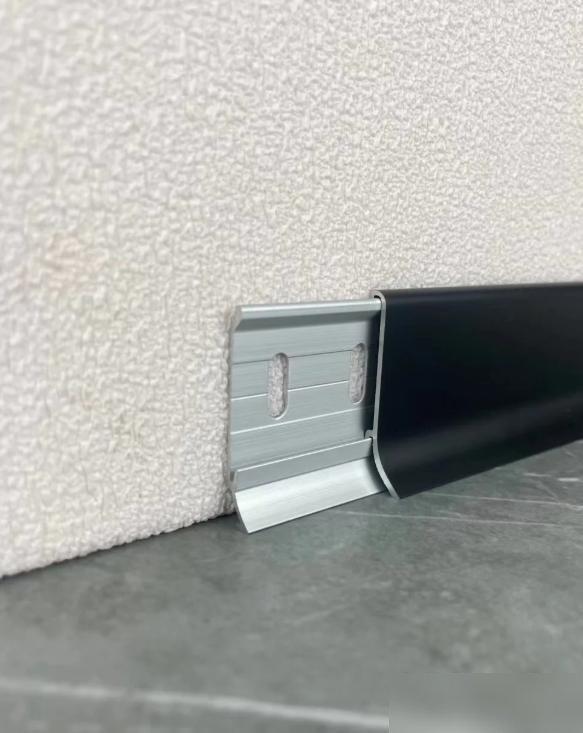 金屬踢腳線我之前心動過,覺得亮晶晶的高級,結果師傅量牆的時候搖頭:“你家牆面坑坑窪窪,裝了肯定有縫。”後來看朋友家的金屬踢腳線,縫裏積了一層黑灰,用膩子填了也凸出來,像給牆貼了層“補丁”——再高級的金屬,也架不住醜啊。