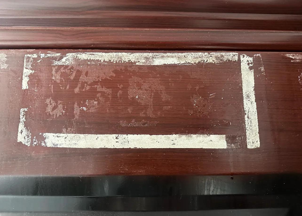 木桌上的貼紙、雙面膠殘留,用指甲摳到冒火都弄不乾淨。