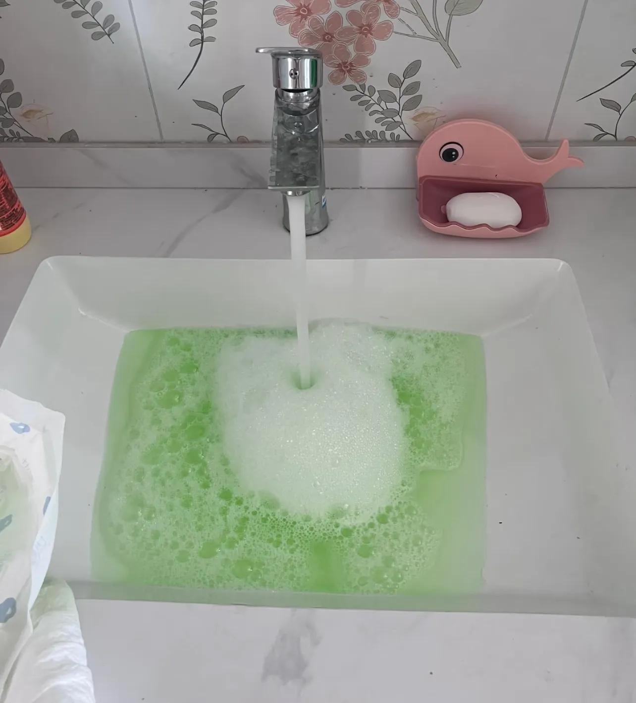 加水稀釋,拖布浸入水中擰至半乾,拖完再清一遍,減少殘留,拖完記得開窗通通風。