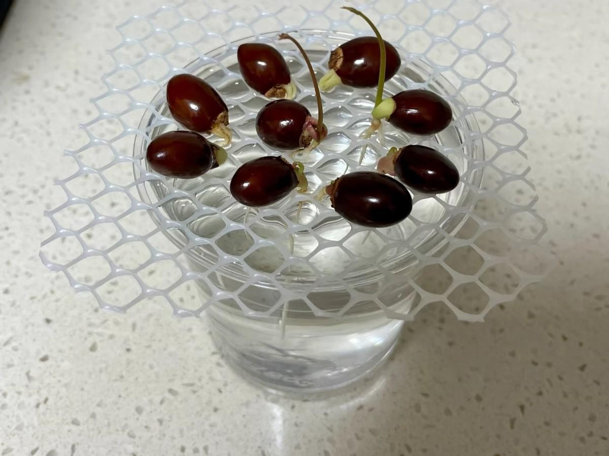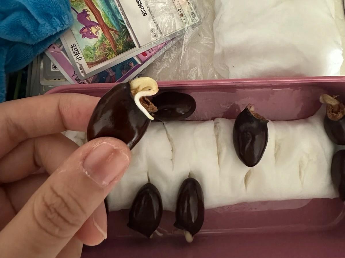 期間要注意保溼換水。如果是水浸法,每天要檢查水位,確保果核底部接觸水,每隔1~2天更換一次清水,保持水質清新,防止滋生細菌。如果是紙巾法,每天要檢查紙巾的溼度,發現變幹,及時用噴壺噴水保溼,始終保持溼潤但不積水。如果紙巾發黴,立即更換紙巾並清潔容器。