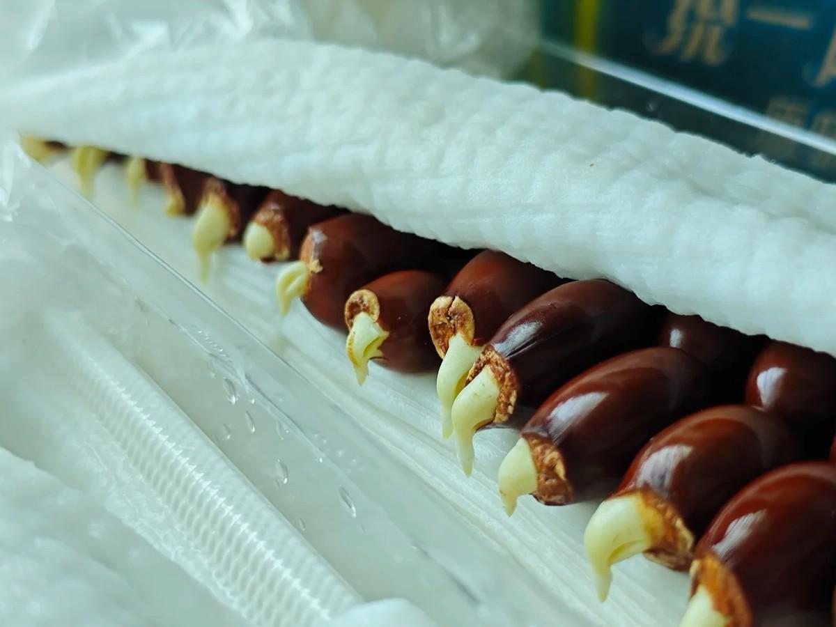 果核浸泡5~7天,出現裂紋以後就可以進行催芽萌芽了。