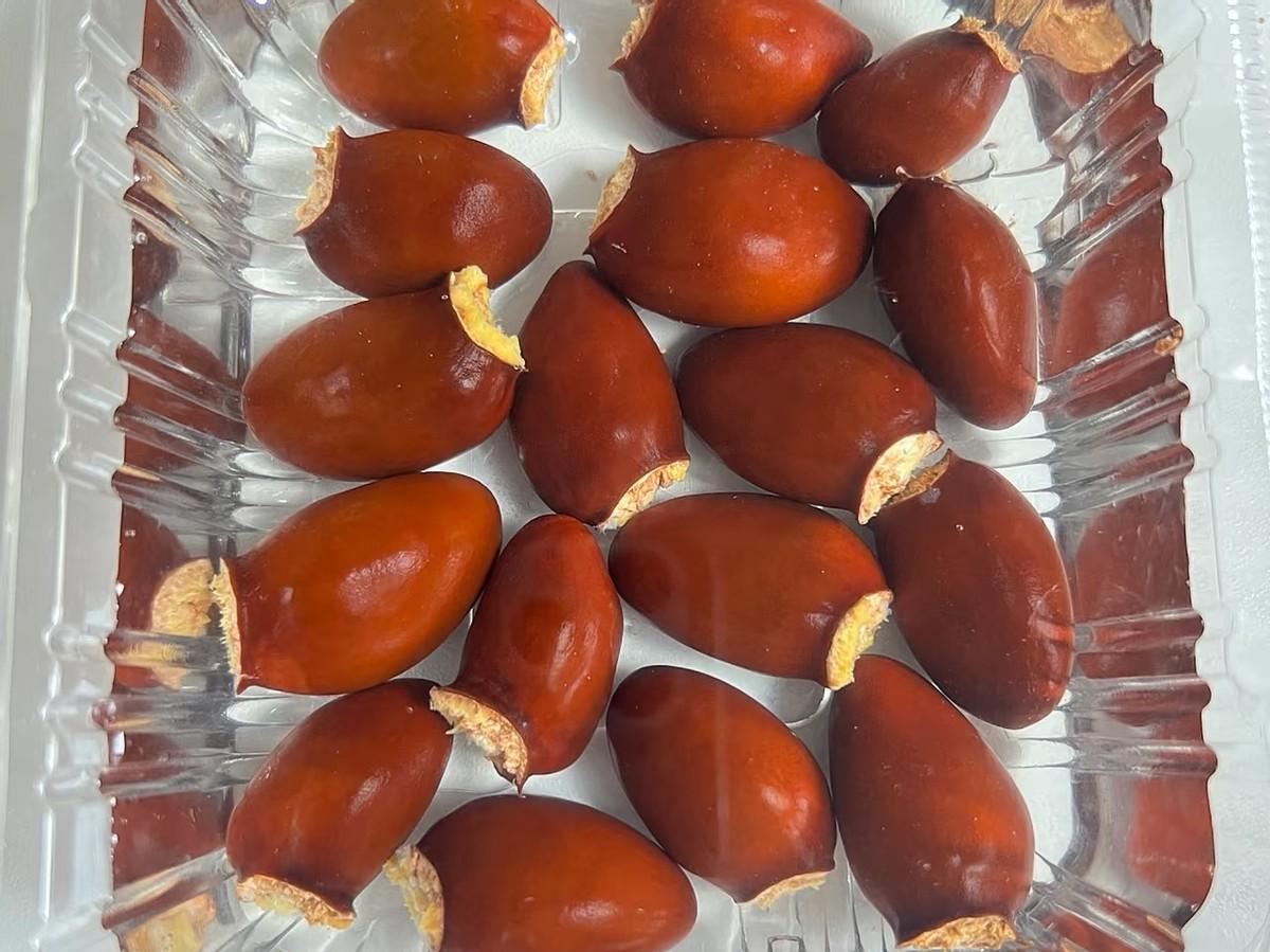 挑選成熟的飽滿的荔枝果核,這是關鍵。果肉喫完後,小心的取出果核。