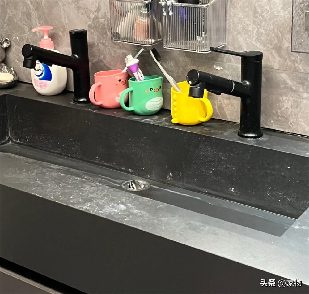 巖板臺盆也是這幾年比較“經典”的網紅裝修,別看剛裝修好看上去很高級,但用過半年以後,你就會發現夾角縫隙中,積聚了很多髒污和黴漬,清理起來特別費力。