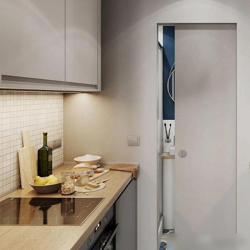 小戶型最頭疼的“顯小”和“收納”,她像通關遊戲一樣全解決了。衣櫃門用鏡面,等於給房間開了“視覺擴容掛”,站在屋裏居然能看到整面牆的自己;廚房和衛生間的隱形推拉門,推開門就藏進牆裏,比普通門省了半平米——要知道北京的半平米,能買個好點的咖啡機呢!還有壁掛馬桶,沒有落地的死角,擦地時不用蹲在那摳縫隙,對於愛乾淨的姑娘來說,這細節比“裝智能馬桶”還貼心。