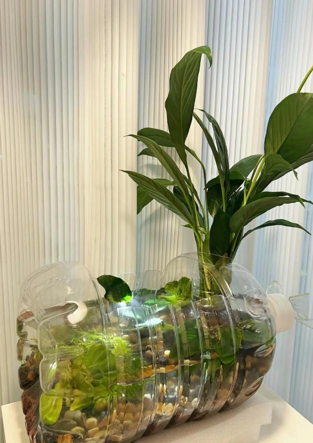 同樣的道理,把礦泉水桶簡單改造一下,還能夠當“魚缸”來用。