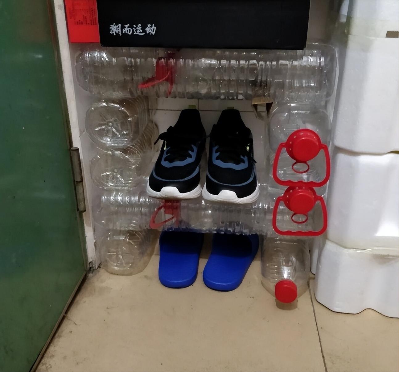 過去我分享過一期礦泉水瓶子妙用的專題,有網友留言說,自己還用礦泉水瓶子改造過“鞋櫃”(如下圖所示)。
