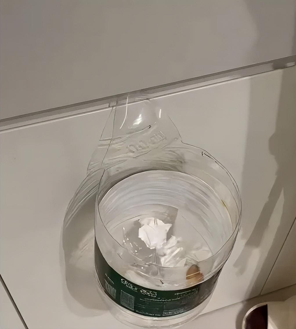 有一次去朋友家,發現廚房居然沒有垃圾桶,直到看到這樣一個自制的礦泉水桶才醒悟,不得不說,這個思路絕了!