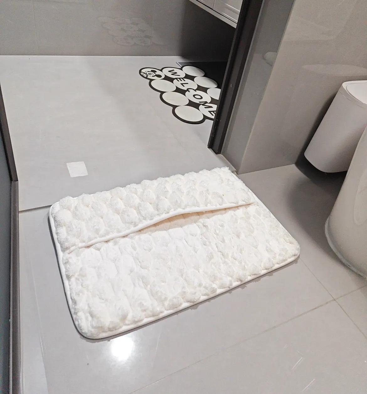 更離譜的是,居然還能化了!一旦受潮吸水過量,整塊墊子就會變得軟爛黏糊,粘在瓷磚上,那場面,簡直像是史萊姆入侵。