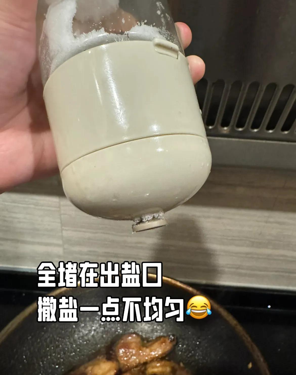 用着用着,鹽全堵在出鹽口,出來時忽多忽少、完全隨緣。說好的精準控量呢?還不如用手抓,至少鹹淡主動權在自己手裏。