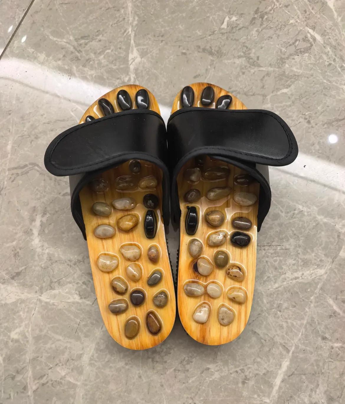 很多老人深信:穿鵝卵石拖鞋按摩足底=通經絡=治百病。