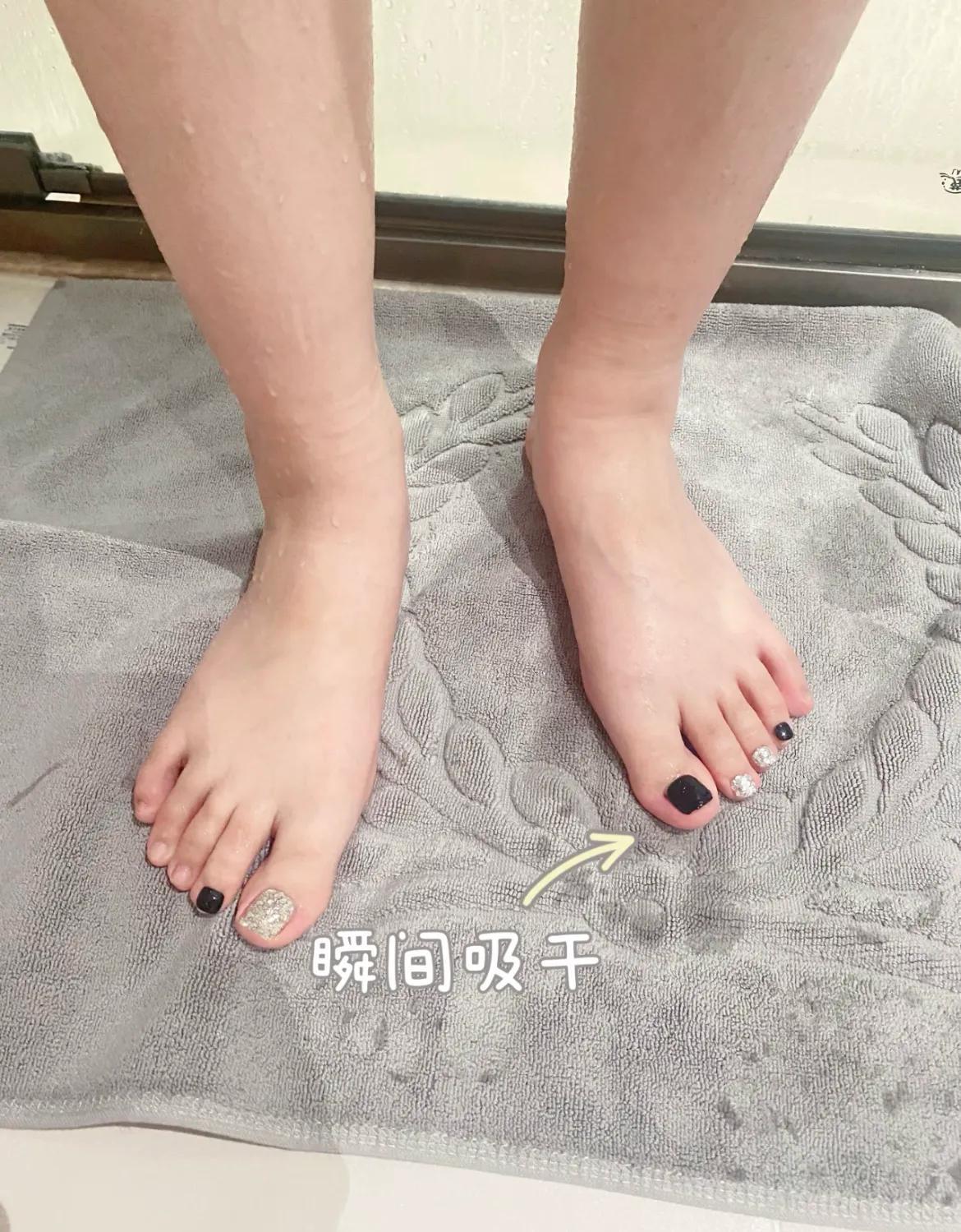 上面是翻過來半截兒的,能順便把腳背擦乾,會比那種普通平面的使用感好很多。