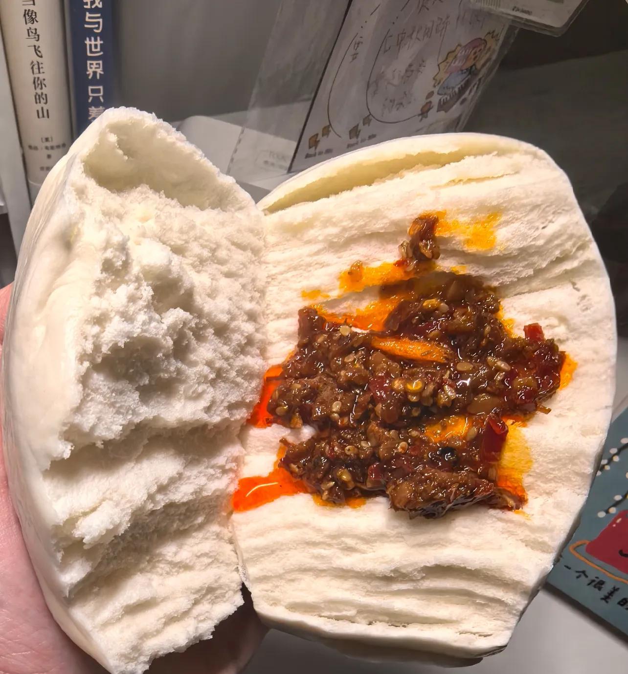 熱騰騰的白饅頭夾着喫,簡直了!和我最愛的油潑辣子夾饃並列第一,一口下去,碳水配辣魂,直接昇天。