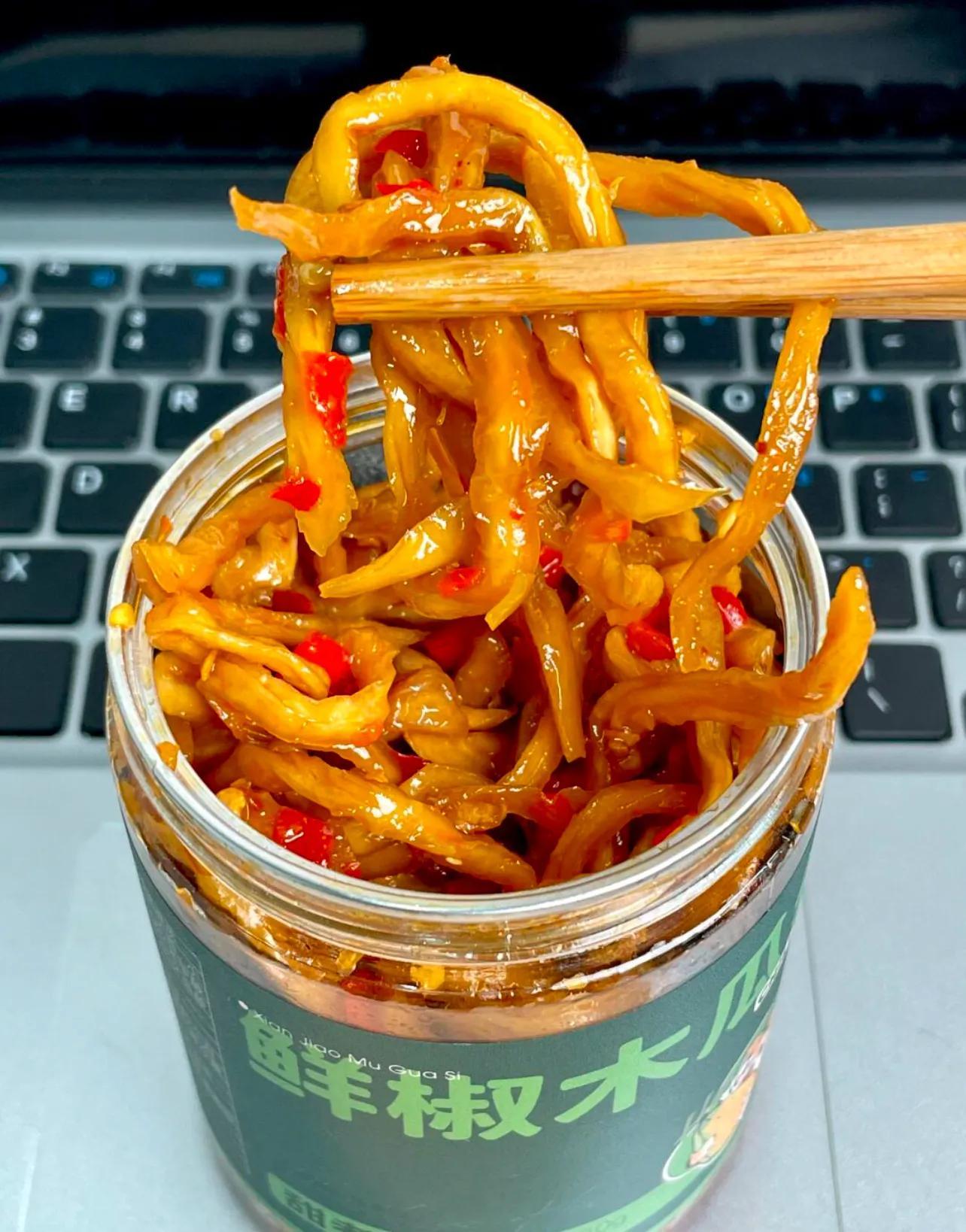 還有一款鮮椒木瓜絲,甜辣腦袋一定會愛,沒有貢菜的那麼辣,配白粥、捲餅很絕。