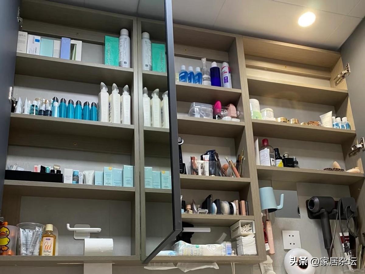 鏡面收納就是將衛生間的鏡面設計成可開啓的櫥櫃,內部設置多層次的隔板用來收納。鏡面可以採用防霧技術,確保在任何情況下都清晰,內部再裝上照明,不僅好看,而且用起來更舒適。