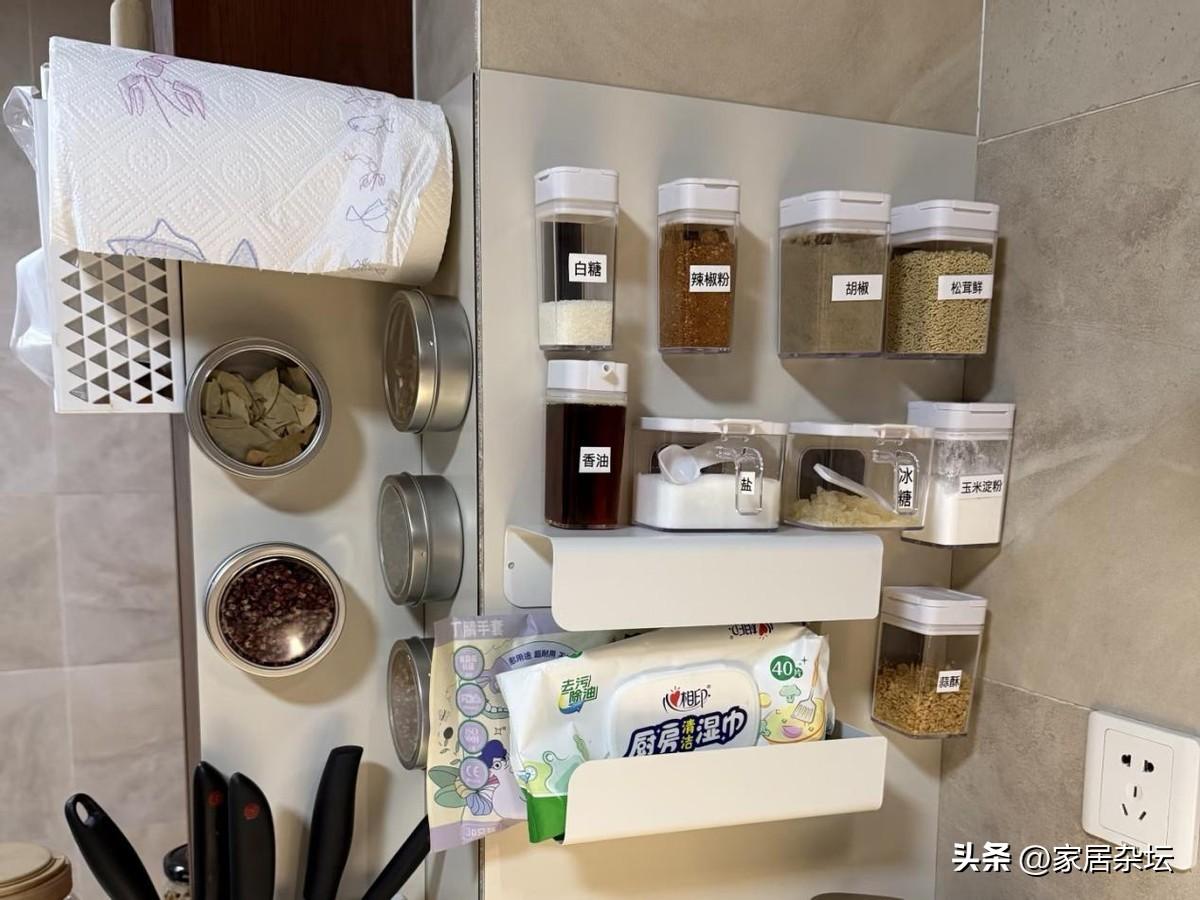 磁鐵收納非常方便,無需翻找,一目瞭然。而且靈活可調,根據需求隨時調整位置。讓廚房的整個檯面變得非常的寬敞整潔,而且很好看。
