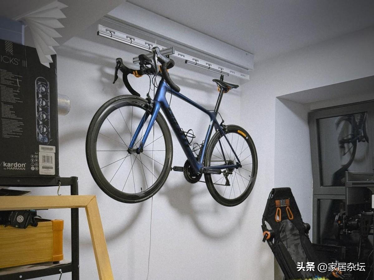那麼可以在天花板安裝滑輪掛鉤系統,承重一般要超過25公斤。先用膨脹螺絲固定軌道,再通過滑輪和繩索將自行車吊起。