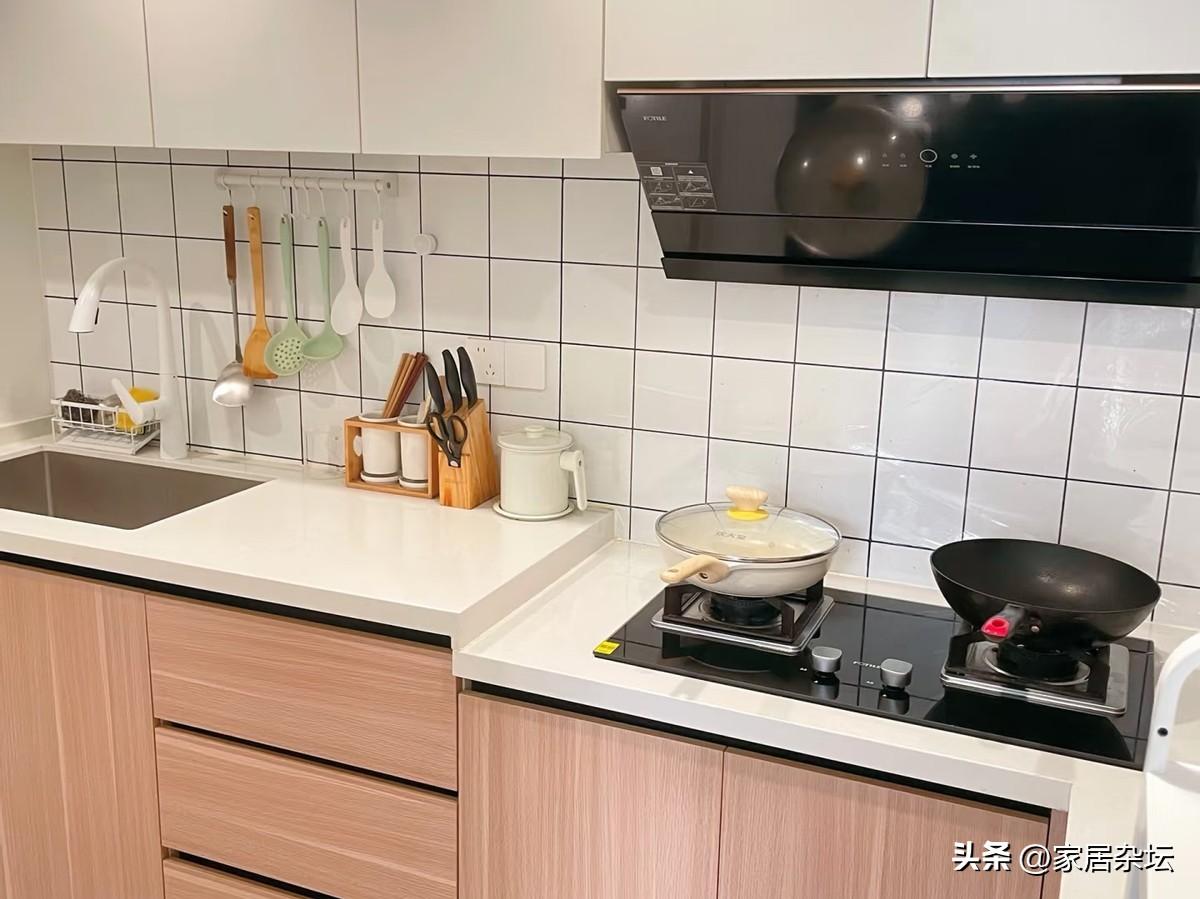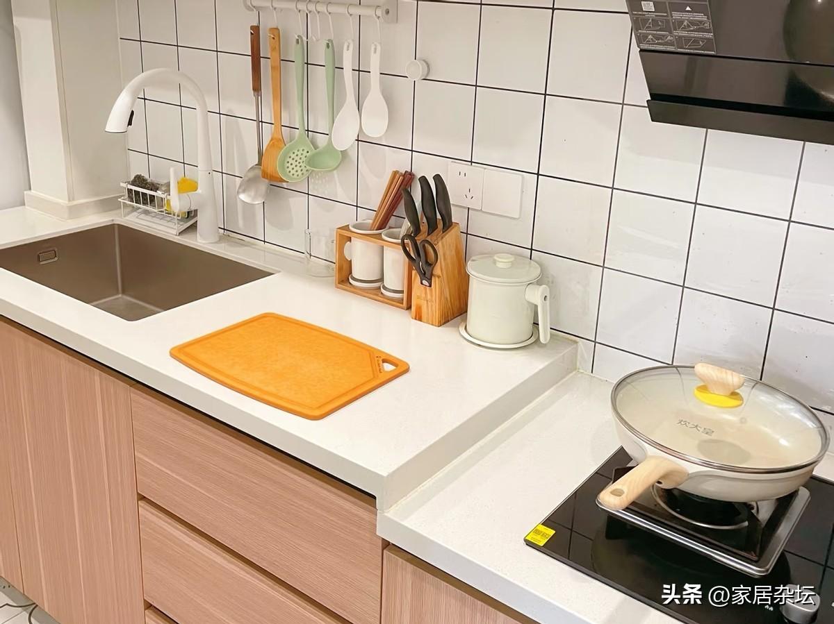 將廚房竈臺區域降低8~10釐米,水槽和操作區適當抬高。一般來說,竈臺高度約80~82釐米,洗菜切菜區高度約88~95釐米。