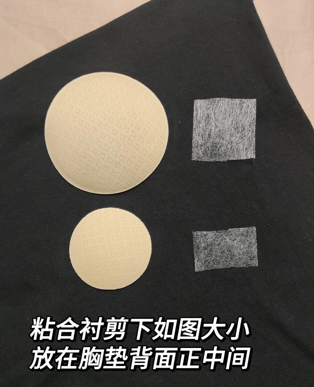 然後脫下衣服翻過來,剪一塊粘合襯放在胸墊背面正中間;