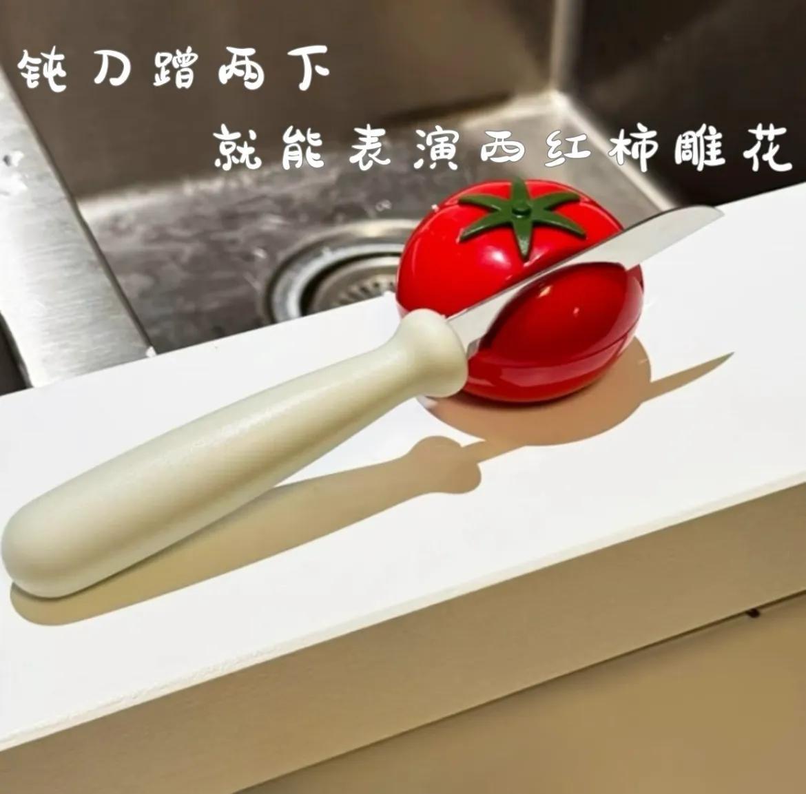但你以爲它就是個小可愛?其實真的好用,家裏備一個,小刀、剪刀都能用,刀蹭兩下就鋒利,磨完再切真番茄,能雕花!