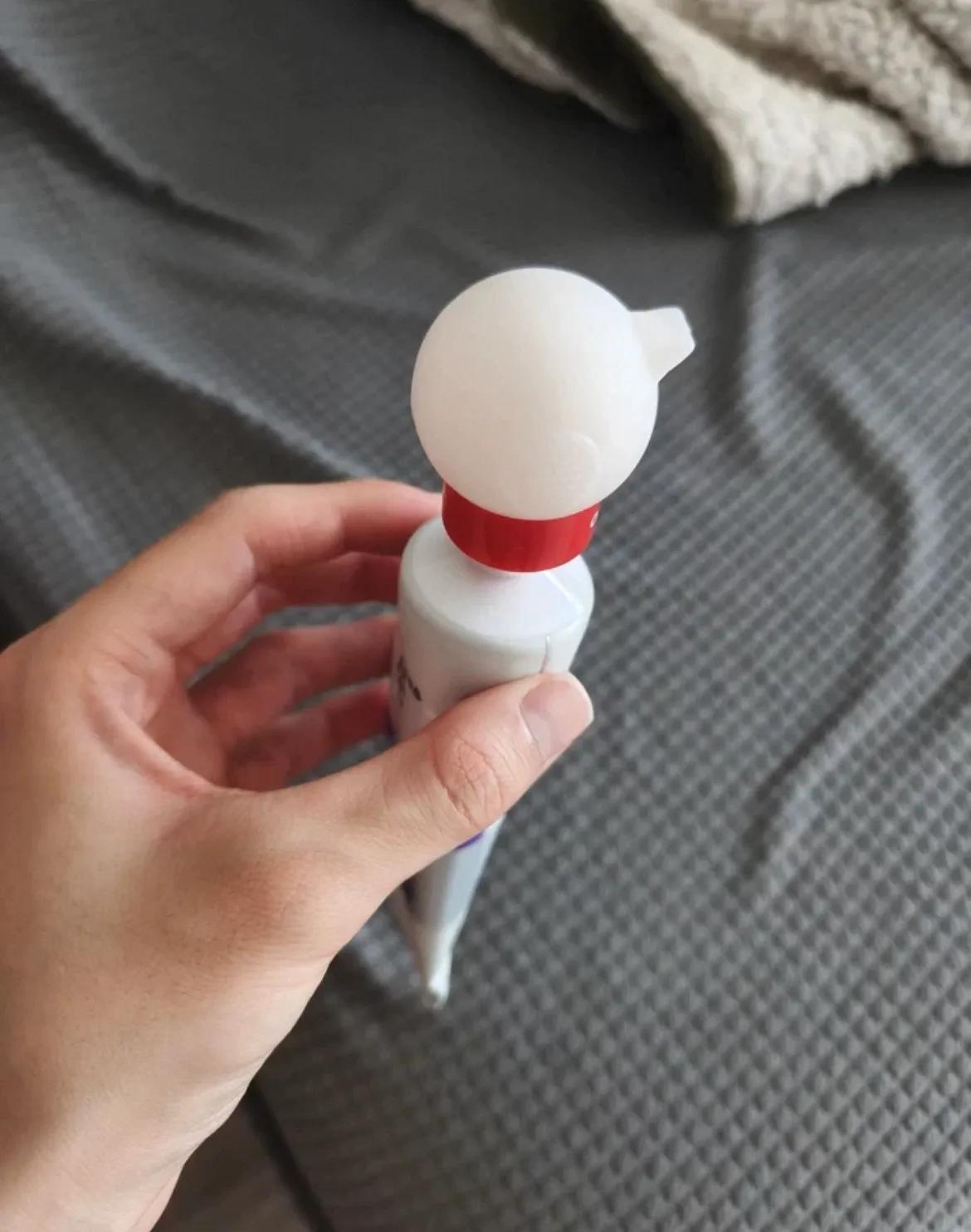 它是利用真空負壓原理,套上牙膏後捏幾下圓球排氣,再一捏,牙膏就出來了。