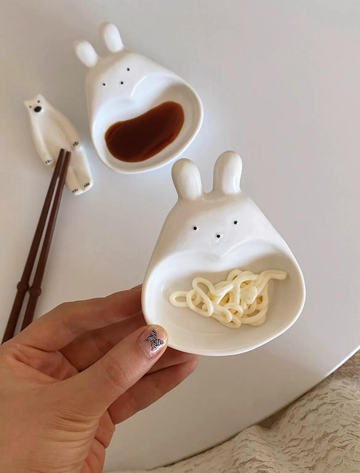 它是陶瓷材質的,放着是個萌翻的小擺件,喫餃子炸雞時放蘸料剛剛好,從此蘸料有了靈魂。