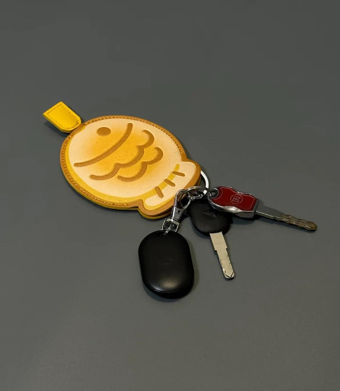 魚嘴可抽拉,掛上鑰匙,輕鬆藏進魚肚子裏,又飽又穩;皮質很柔軟,能放下大小適中的三四把鑰匙。