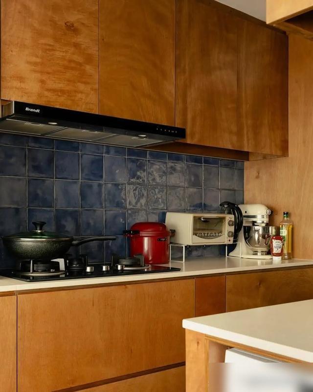 赭石地磚配藍磚牆,“番茄炒蛋”配色卻一點不土,像夕陽掉進地中海。