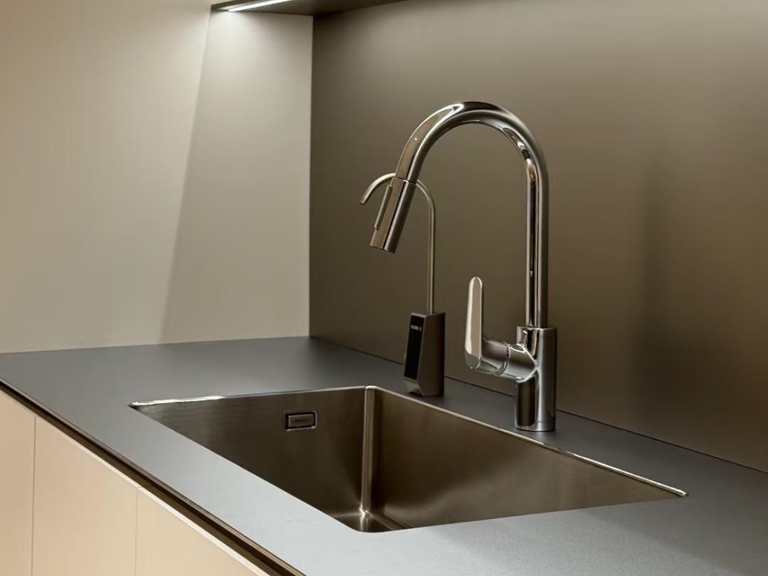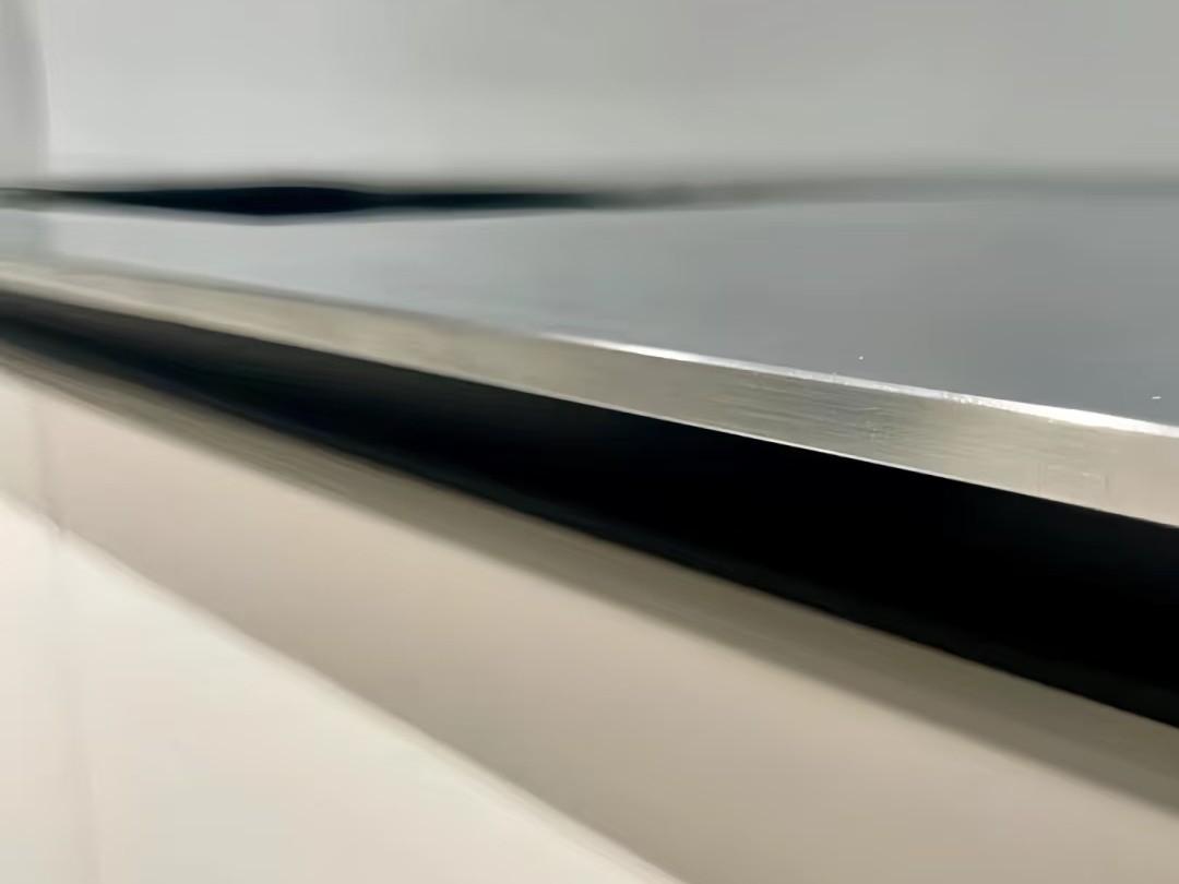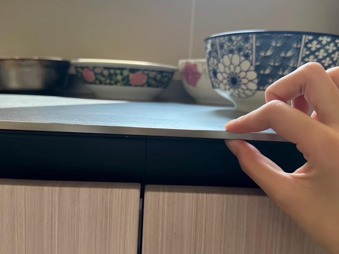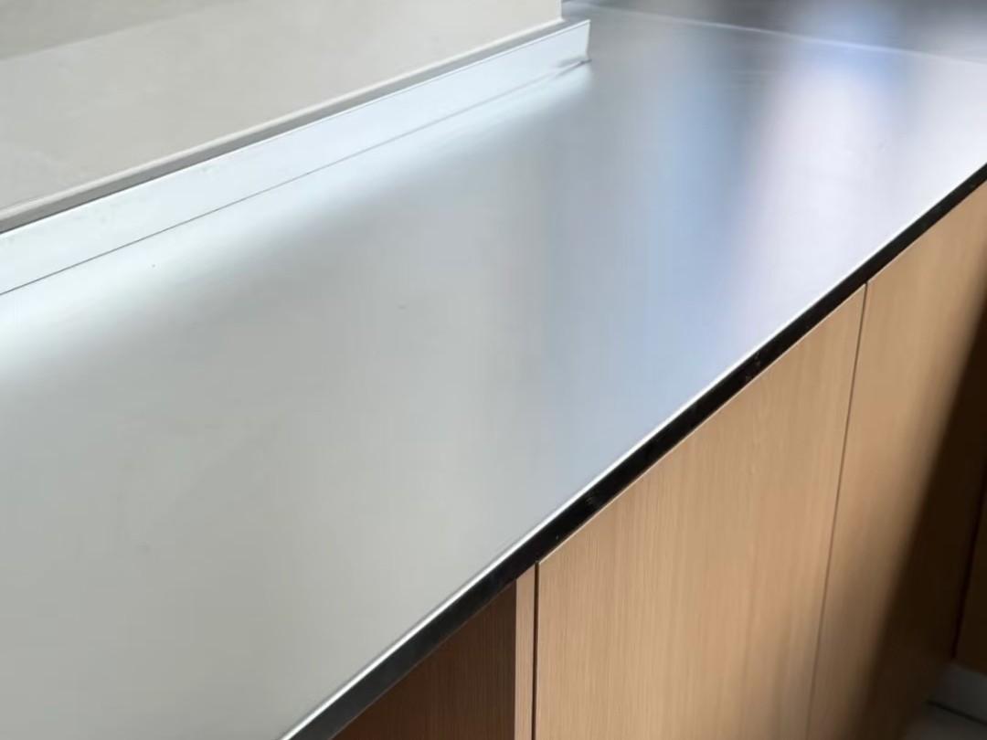這次裝修,老公不知道是什麼裝修腦回路,非得選實心不鏽鋼檯面。整個檯面是實心的,厚度大概是8毫米,真的很厚,價格也很貴。