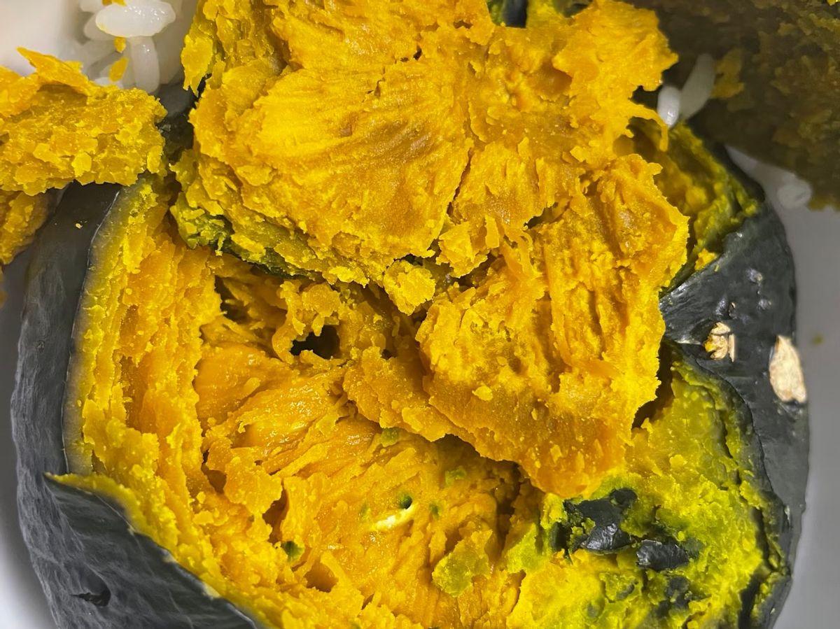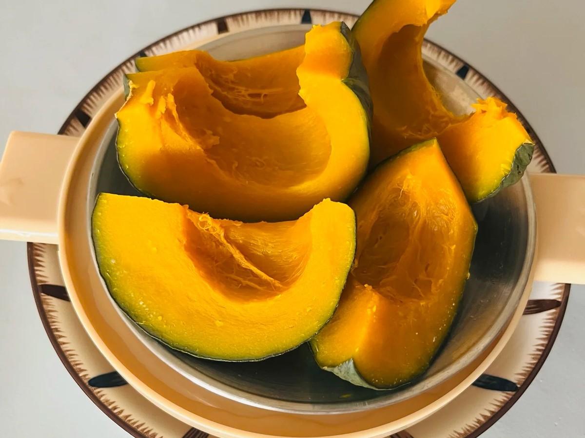家裏如果有南瓜,可以將南瓜切塊,然後蒸熟壓成泥。之後,再加牛奶製成輔食,真的很好喫。