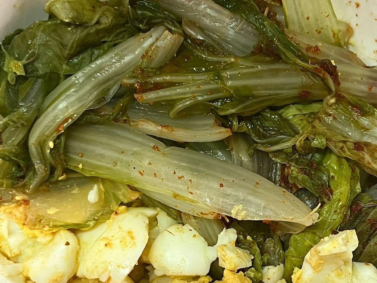 把洗乾淨的金針菇,娃娃菜,絲瓜等容易熟的蔬菜,稍微切成段,然後加蒜蓉調味,放在蒸蛋器中。