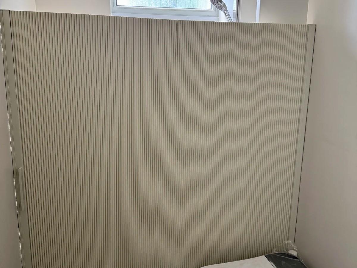 隱形浴簾是在牆面上固定安裝的。在不用的時候,浴簾可以摺疊,與牆面形成一體,幾乎都看不,到形成了隱形;在使用的時候,將浴簾拉開,一個淋浴區立馬就出現了。