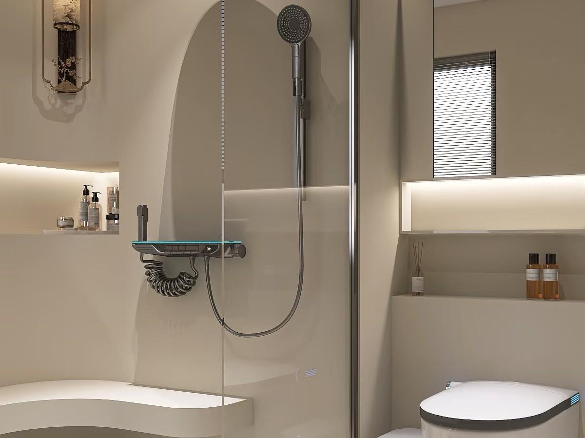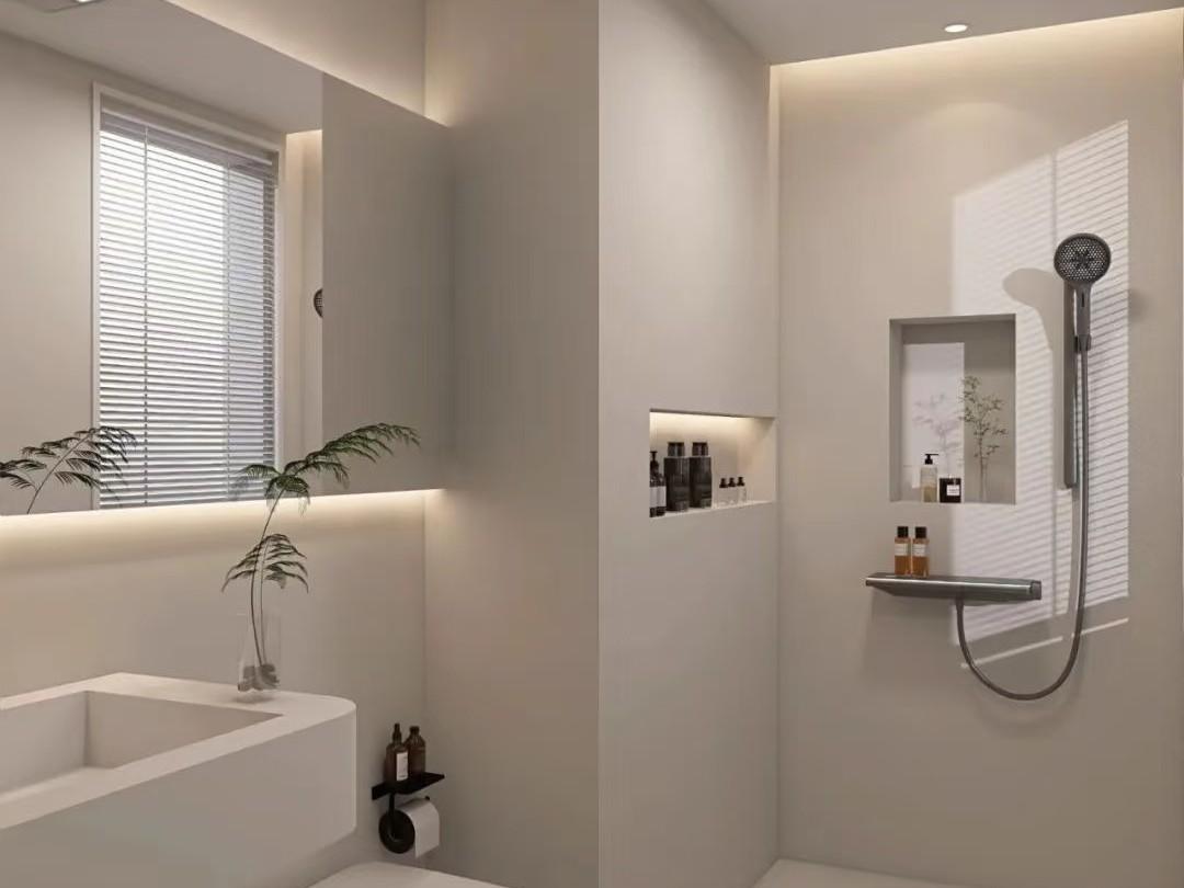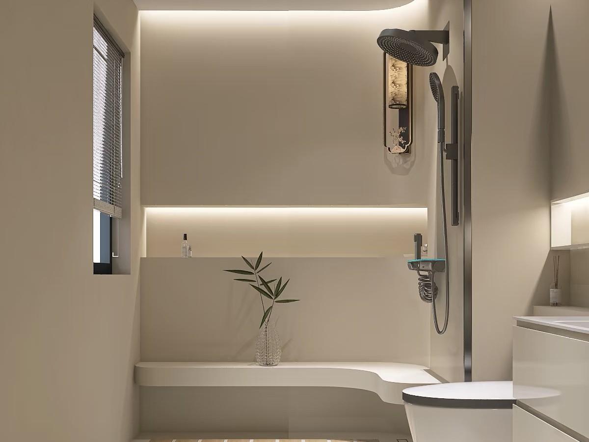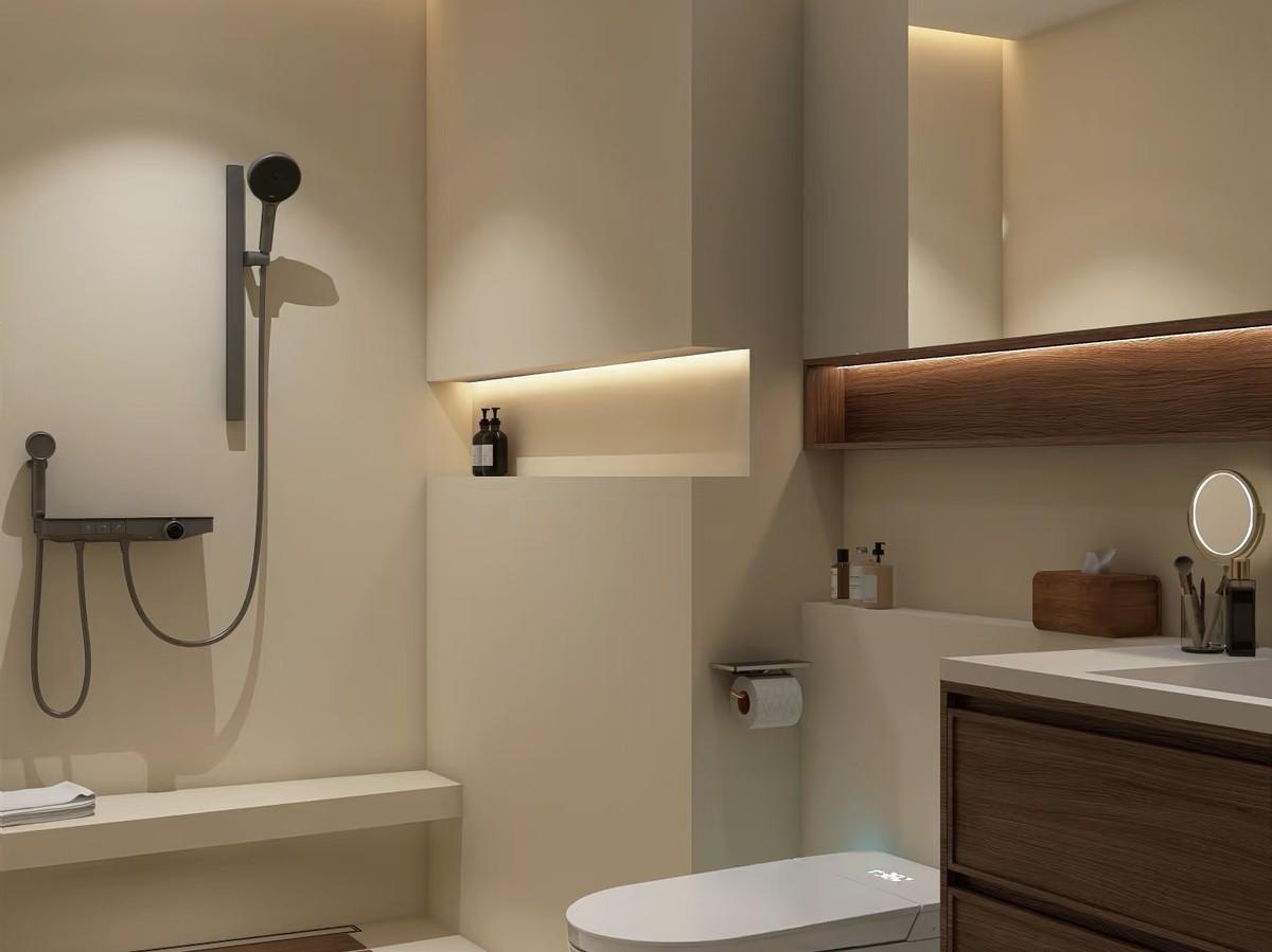 衛生間內可能還包含了座位區,多層花灑系統,氛圍感滿滿的燈光設計。