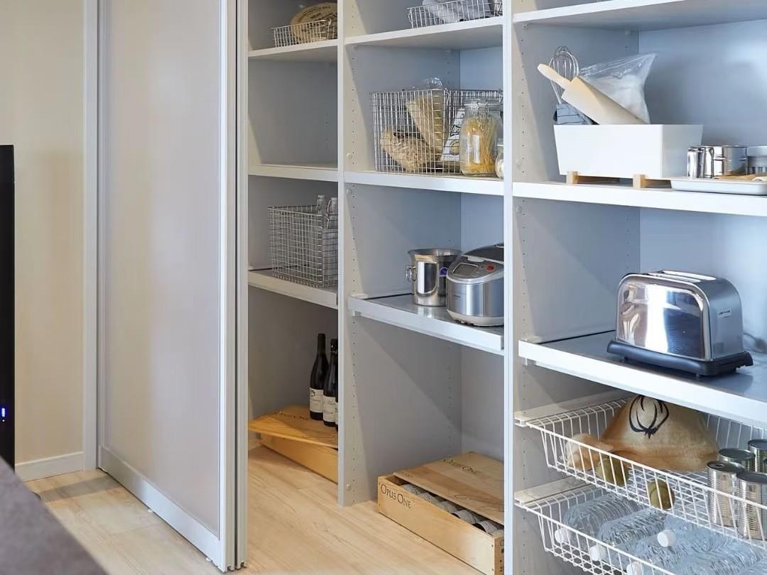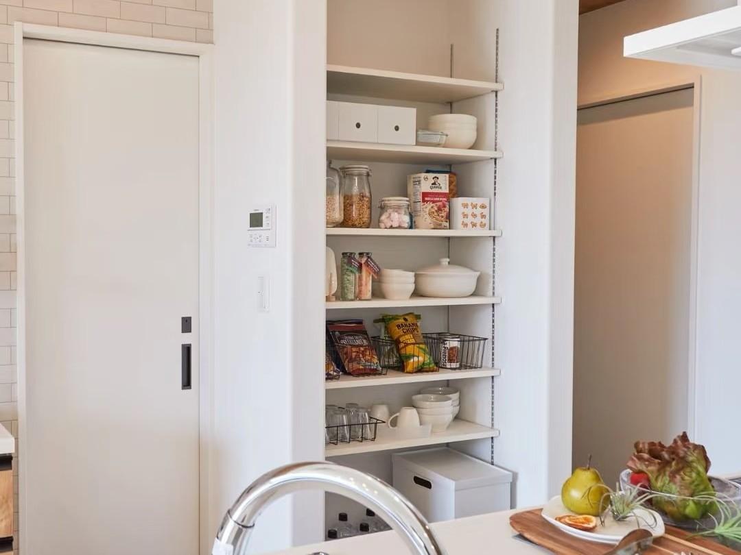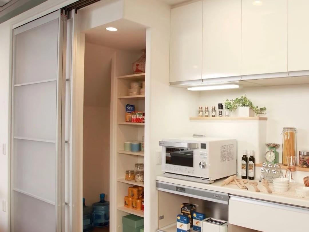 日本家庭廚房的壁櫥收納,可以極大提高空間的利用率,收納能力超強。可以說廚房內所有的物品,都可以實現隱藏收納,保持房間整潔。