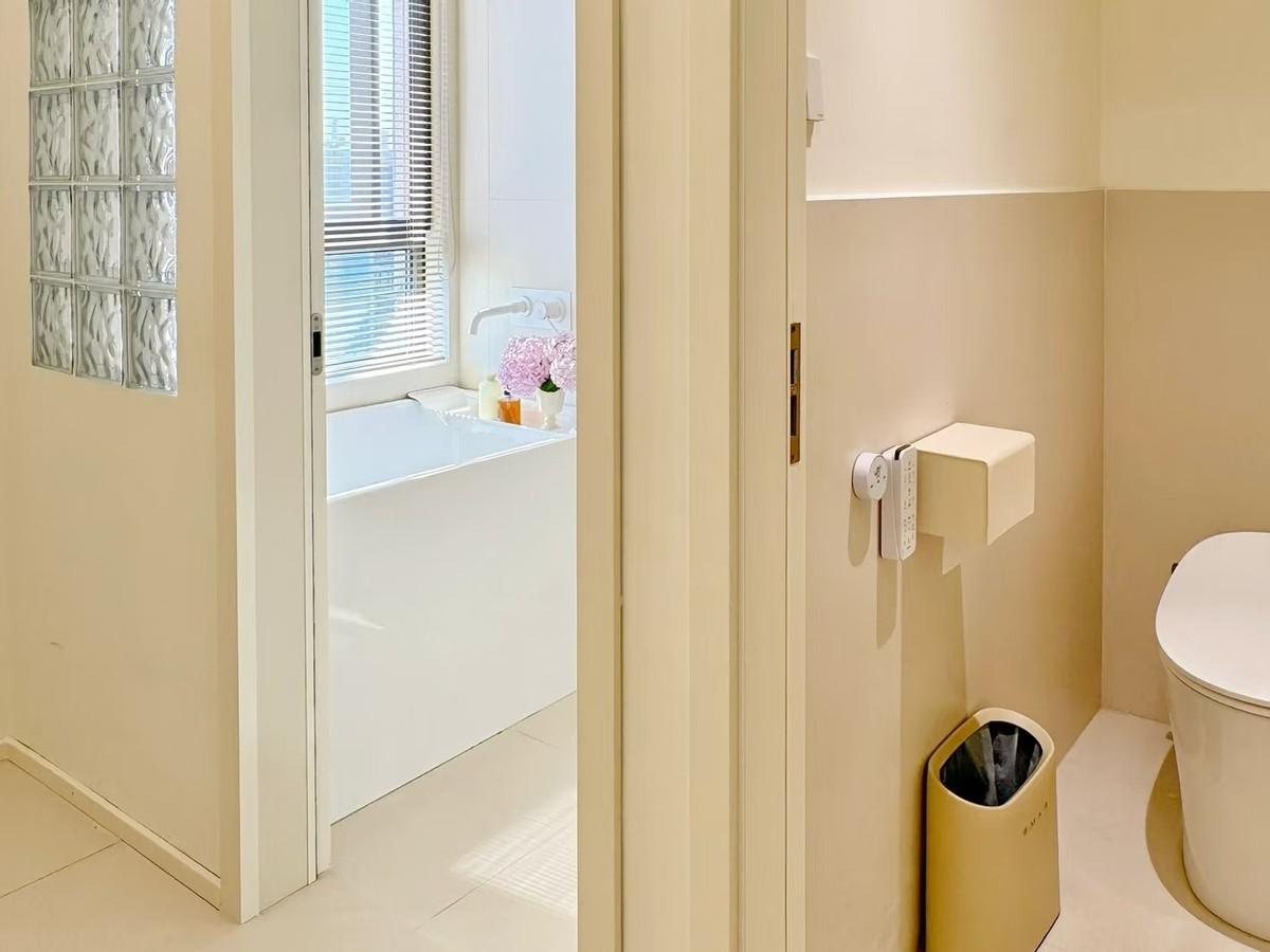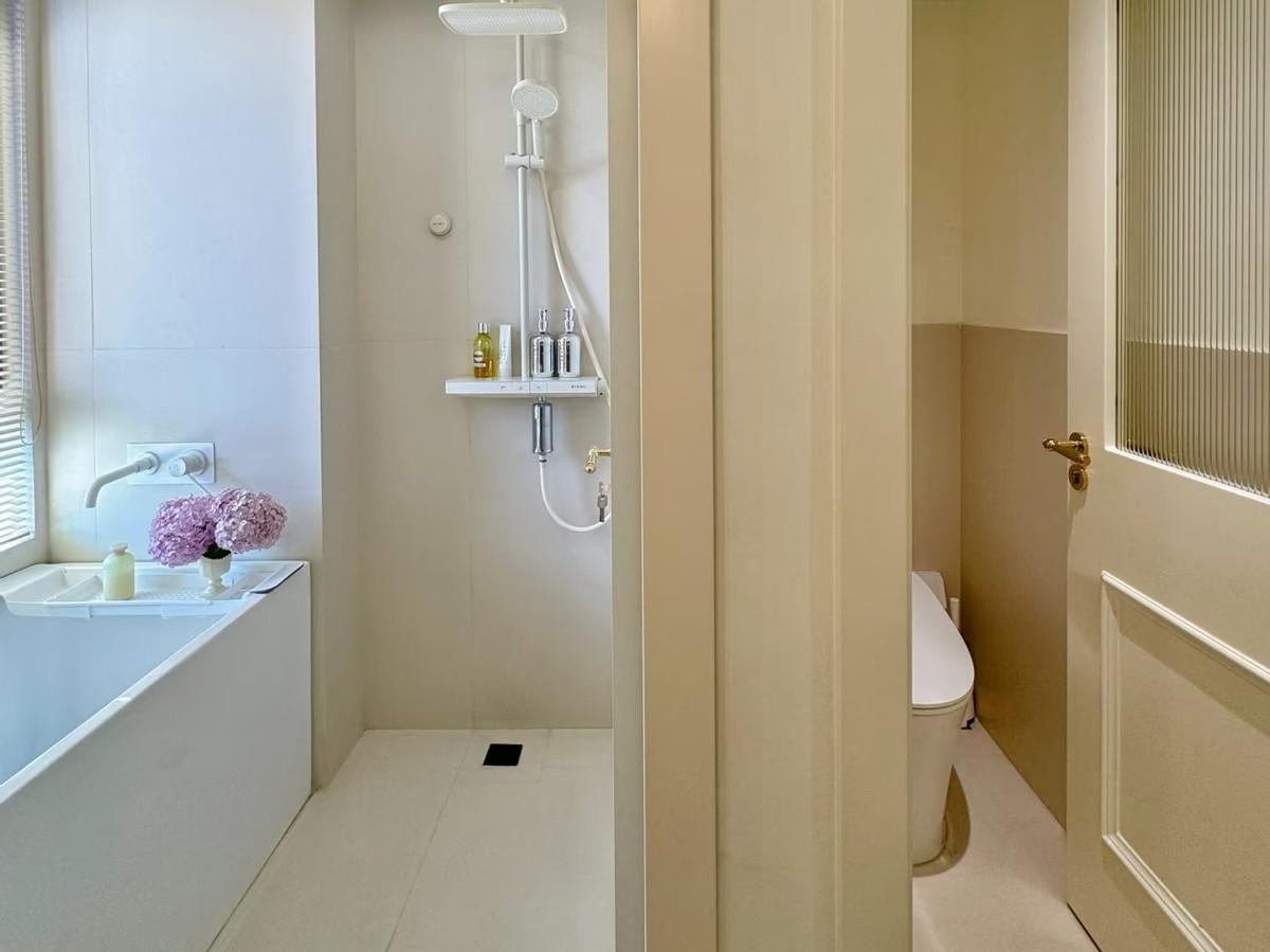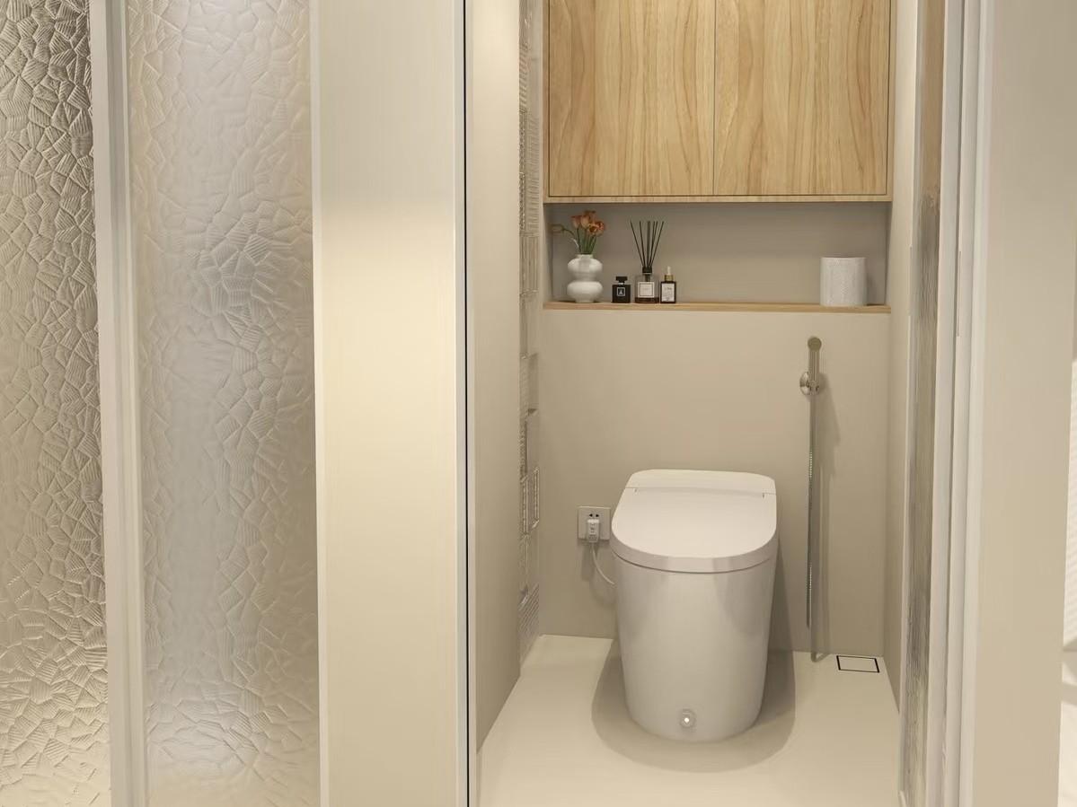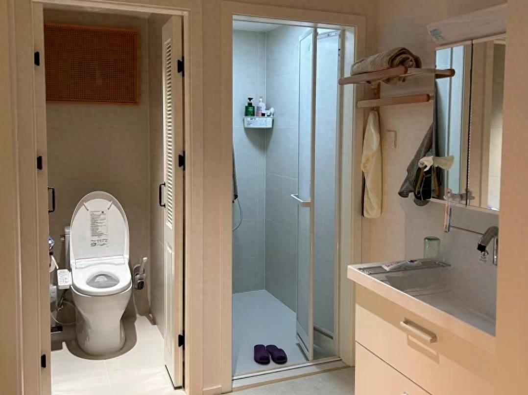 衛生間的精修裝修設計,真的讓人驚歎。他們將一個小小的衛生間實現瞭如廁區,洗漱區,淋浴區和洗浴區,四個功能完全分開。