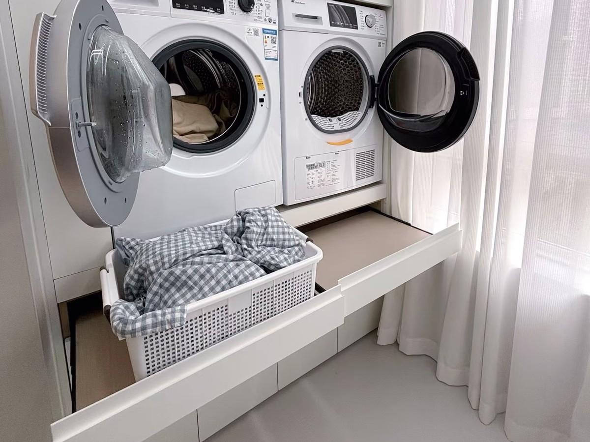 多功能洗衣區的洗衣,晾衣一站式完成,可以減少來回走動,方便快捷。讓我最感嘆的是,可以很高效的利用空間,小面積也能夠實現多種功能。