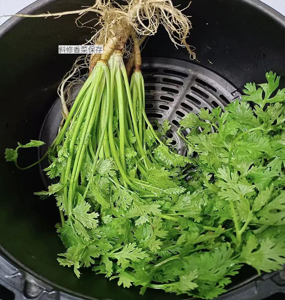 而現在的年輕人,直接用空氣炸鍋來保存香菜碎,想喫多久都可以。