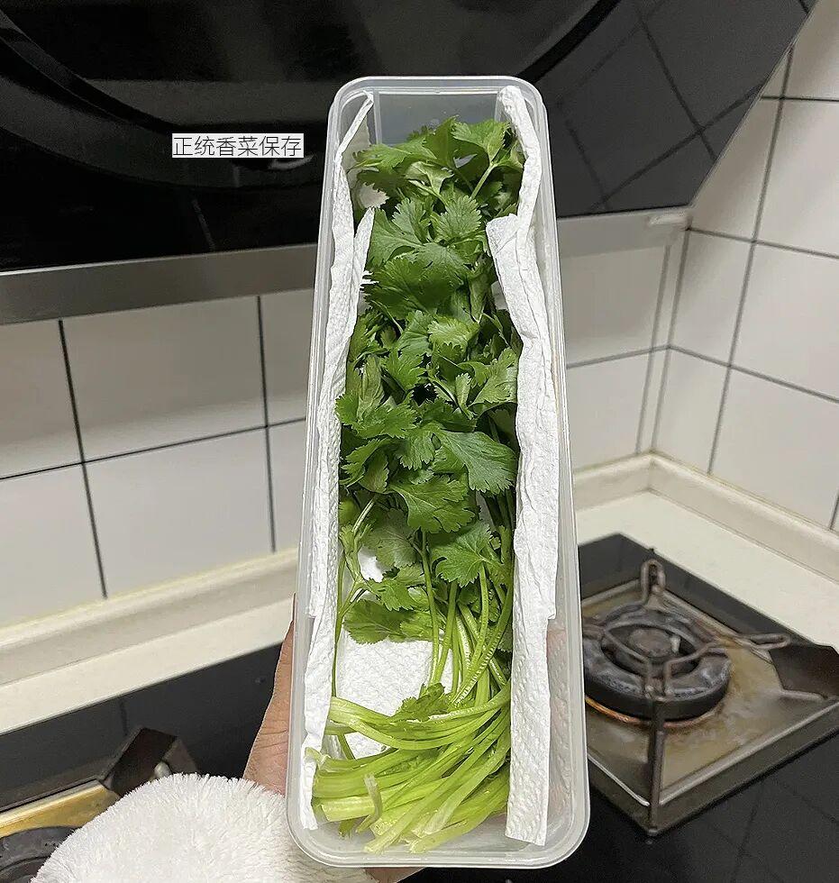 正統的香菜保鮮方法,又是保鮮膜、又是保鮮盒的,不但佔用冰箱空間,還保鮮不了多久。