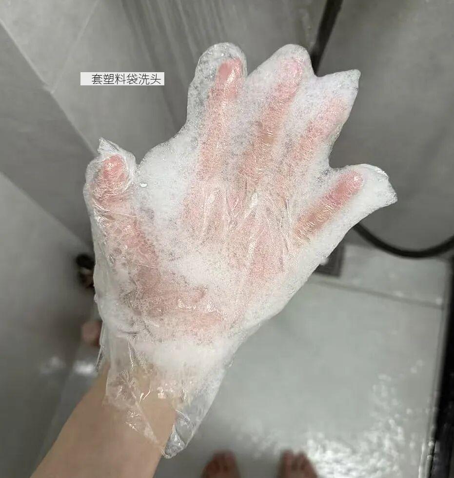 以前還以爲她們是爲了保護手,現在才知道戴着塑料袋洗頭可以洗的更快、更乾淨。
