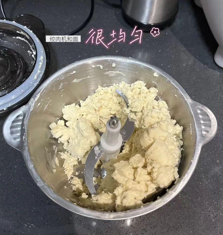 而年輕人根本不管三七二十一,直接一股腦倒進絞肉機裏,十幾秒就能輕鬆搞定和麪,關鍵還攪拌更均勻。