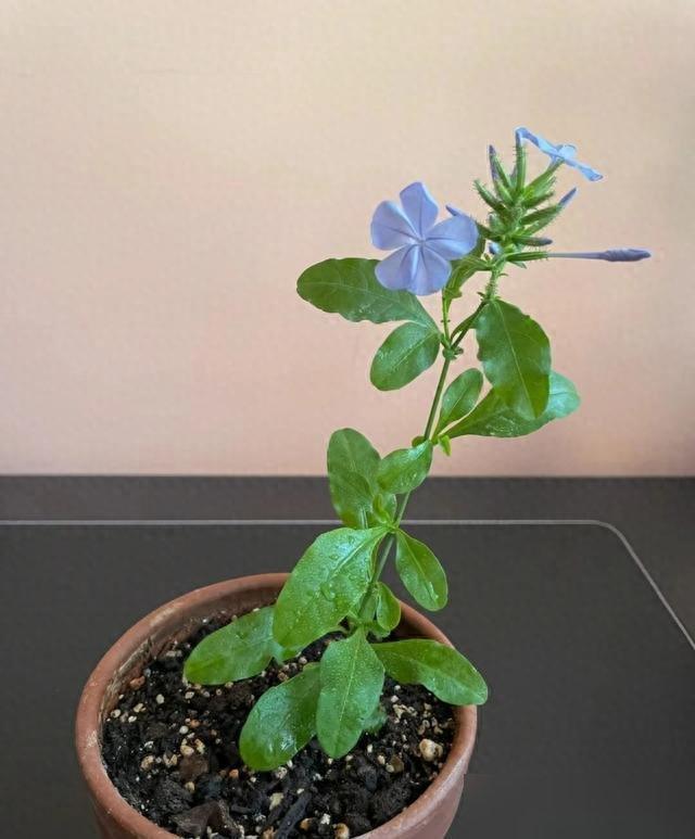 現在這盆藍雪花已經竄到一米二,藍盈盈的花球掛得滿枝,大太陽底下看一眼,比咬口冰西瓜還解暑——你說神奇不?