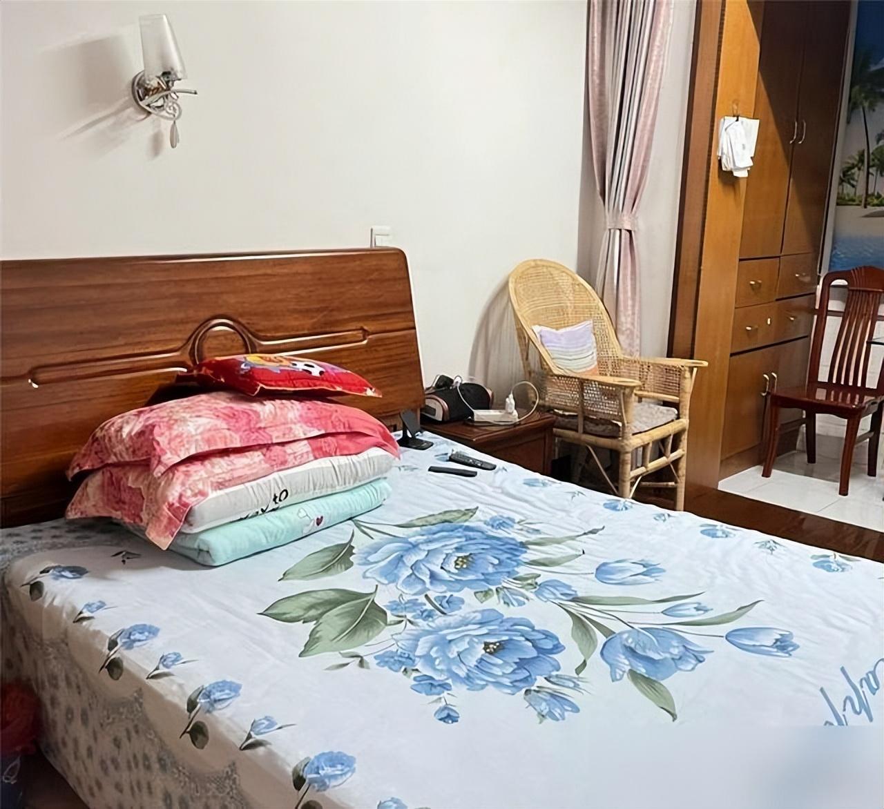 阿姨家的門一推開,第一眼看的不是傢俱,是“穩”:牀品疊得像部隊裏的豆腐塊,牀單平得能映出窗外的梧桐樹影;牀頭櫃上擺着用了十年的陶瓷杯,杯沿有個小缺口,卻擦得鋥亮;牆面是舊舊的米黃色,有幾道孫子小時候畫的蠟筆印,沒裝裱,用透明膠貼得整整齊齊——這些“不精緻”的細節,比我家那面花三千塊裝的“網紅巖板背景牆”,更讓人想坐下來多待一會兒。
