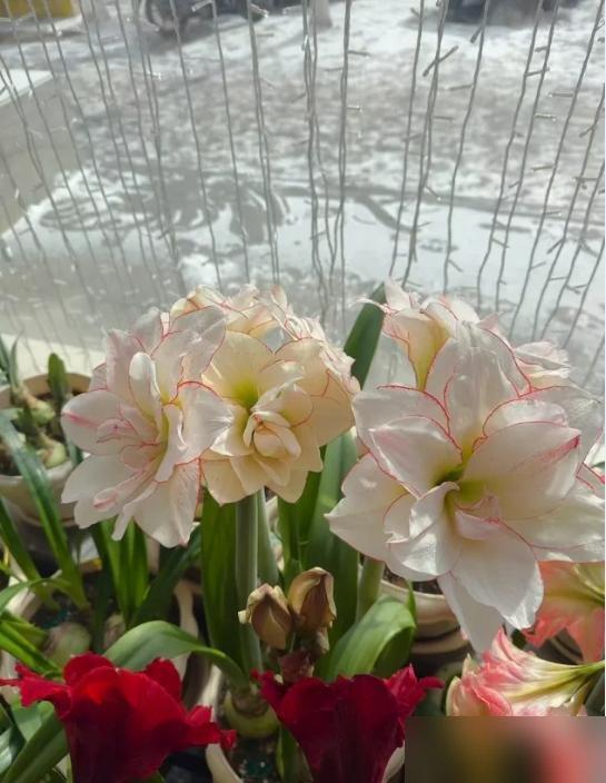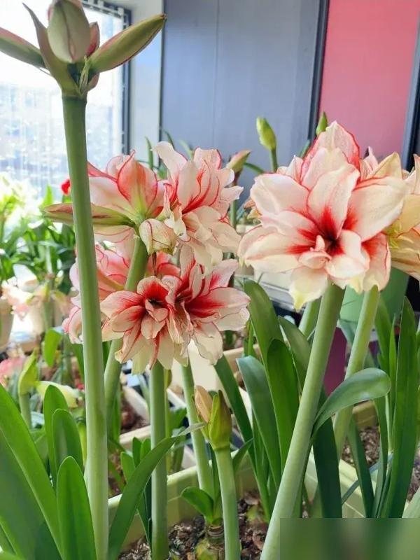 能養到這份兒上,得有“三大底氣”。第一是“房子夠大”——你看人家樓梯轉角、窗臺、過道全擺滿了,還整整齊齊跟排方陣,換成我家那8平小陽臺,擺10盆都得“疊金字塔”!第二是“精力夠足”——朱頂紅看着“糙”,實則是“細節控”:換盆得用腐葉土混珍珠岩,施肥要追“花多多2號”,光照得每天曬夠6小時,就連收球都得一個個捏捏有沒有爛根,近千個球啊,沒個家人幫忙,怕是得累到胳膊抬不起來!第三是“眼光夠毒”——那些花型獨特的,什麼“異域之星”“精靈”,都是稀有品種,光買種球的錢,說不定能買個小電動車,這心思和錢包都得“雙雙在線”!