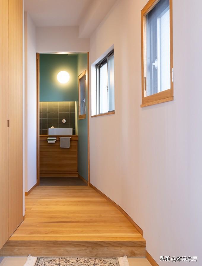 玄關的正面是獨立馬桶間,打開門就是綠色的空間,這個後面再講。