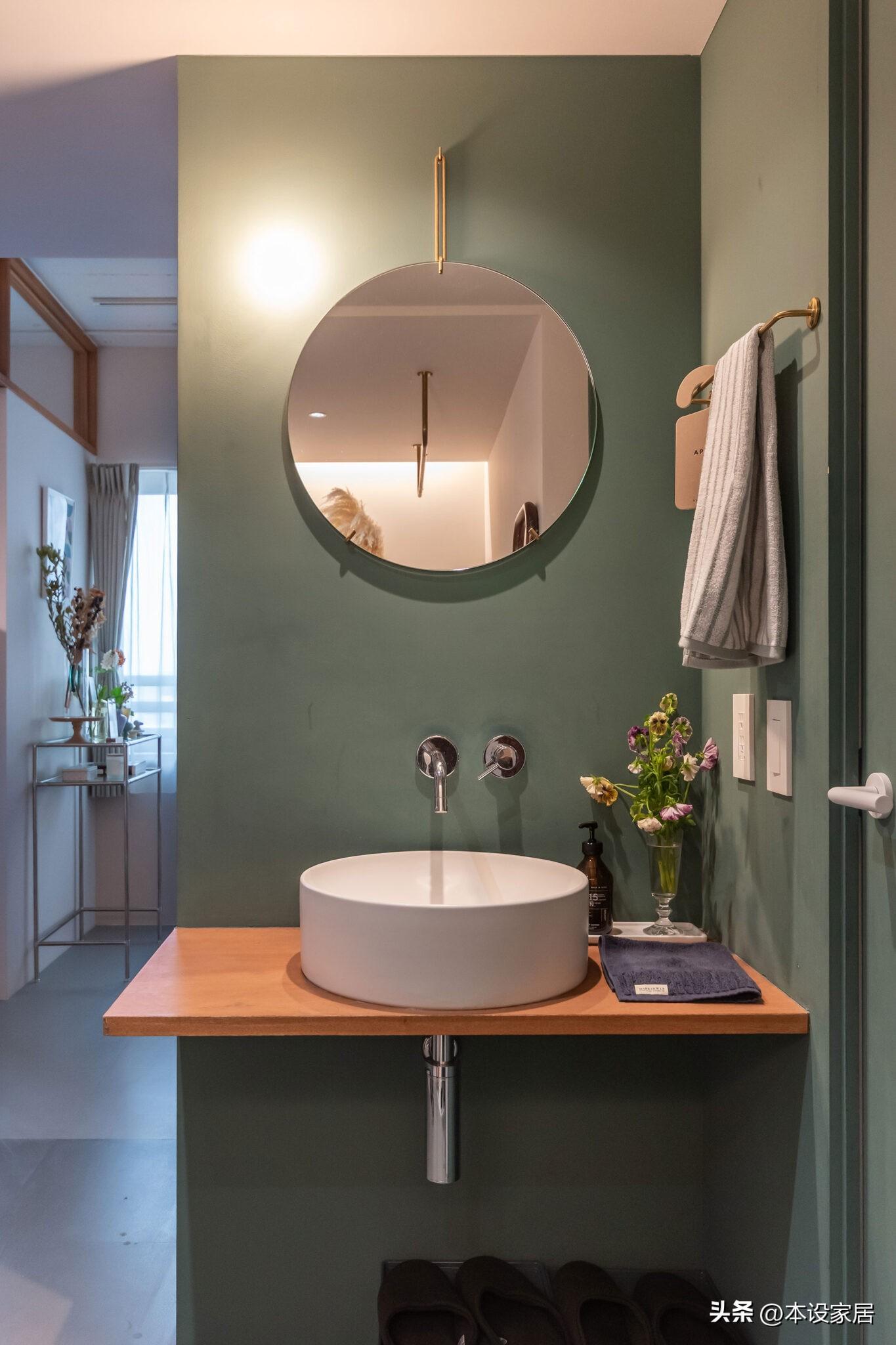 墨綠色的牆面,給素淨的空間增添了一份色彩,顯得更有活力。