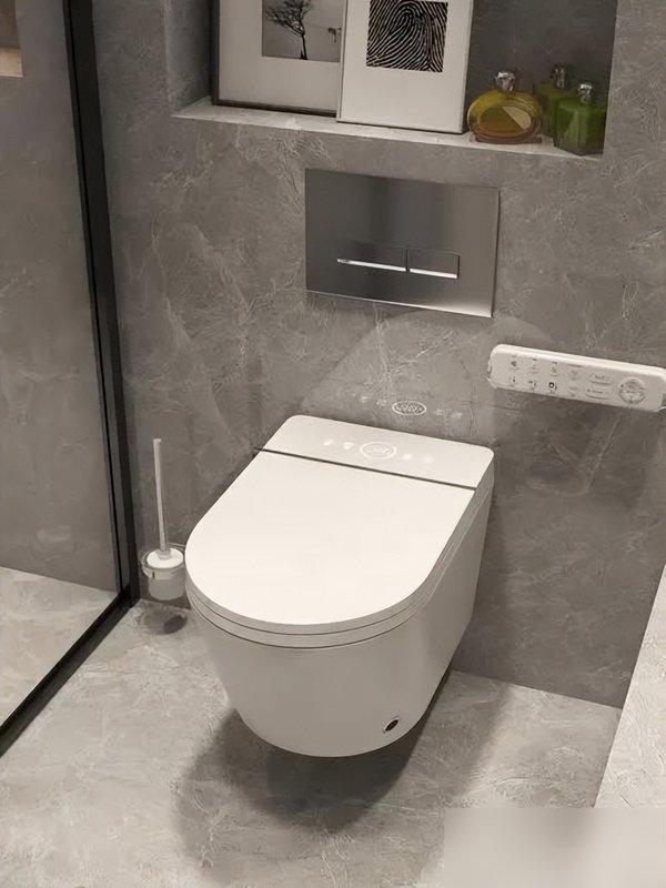 白瓷馬桶貼牆站着,底下懸空得能塞個拖把過去——以前蹲在馬桶邊摳黑垢的日子,我現在想起來都犯惡心,現在倒好,拖把一推全乾淨,小戶型衛生間本來就轉不開身,地面空出一塊,連給孩子放個洗澡玩具筐都夠。