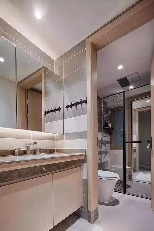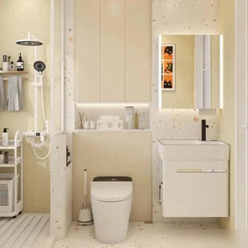 現在衛生間佈局也變聰明瞭,我朋友家用玻璃隔斷把淋浴區隔開,洗完澡幹區還是乾的,鏡子都不會起霧;瓷磚選淺米黃,燈光一打,小衛生間跟開了濾鏡似的,比以前深灰色瓷磚亮堂三倍——你說以前咋沒發現,淺色磚能救小空間呢?