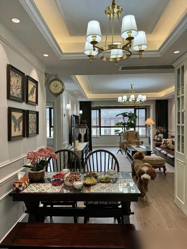 現在大家都在追流行,今天奶油風明天侘寂風,可這款美式復古能火,不是因爲它多“潮”,是因爲它“懂”普通人的日子——沒有花裏胡哨的造型,石膏線是爲了好看,嵌入式是爲了收納,深色調傢俱是爲了耐用,連鮮花和地毯都是爲了讓家裏有“活氣兒”。你說,這樣的家是不是比那些“只能看不能用”的網紅款,更讓人想住進去?