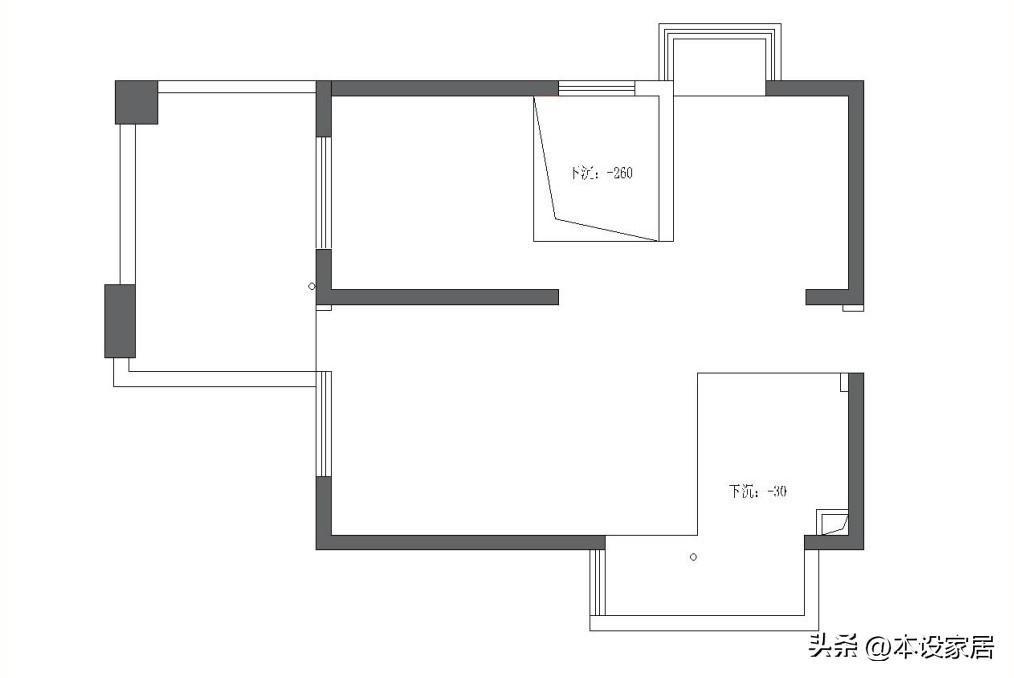 這套房子建築面積85㎡,是小二居的戶型,毛坯房的廚房和衛生間沒有隔牆,但整體來看比較方正,平面佈局基本保留了原有功能空間。