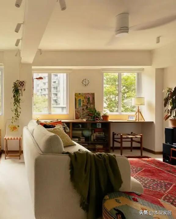 Sara家位於1樓,房前有高大的梧桐樹,讓客廳成爲這個家最大的亮點。